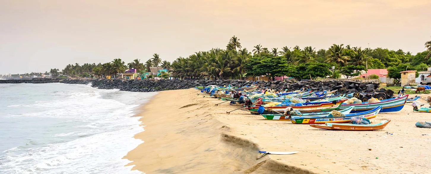 Experience Chennai's vibrant city life, cultural landmarks, and Marina Beach, followed by the French colonial charm, serene beaches, and vibrant culture of Puducherry.