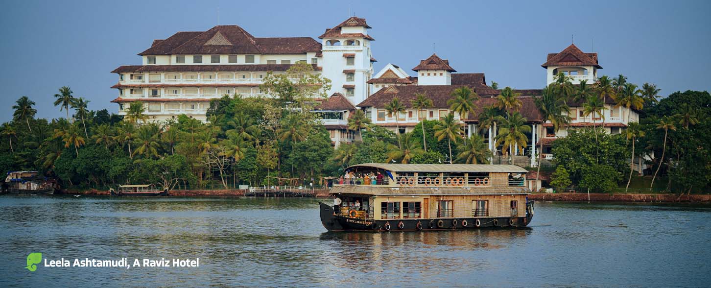 Escape into a refined Kerala holiday with this 5-day luxury lake and beach tour, thoughtfully designed for relaxed travel and premium comfort. Enjoy a peaceful backwater stay at The Leela Ashtamudi, followed by a scenic coastal retreat at The Leela Kovalam. From the calm waters of Lake Ashtamudi to the iconic beaches of Kovalam, this luxury Kerala package offers elegant stays, wellness experiences, resort activities, and smooth transfers—ideal for couples and leisure travellers exploring South India.